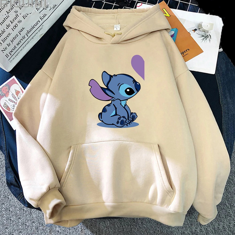 Осенние флисовые простые толстовки, мужские теплые мягкие толстовки с капюшоном и милым мультяшным принтом из мультфильма «s Stitch Disney» в сти...