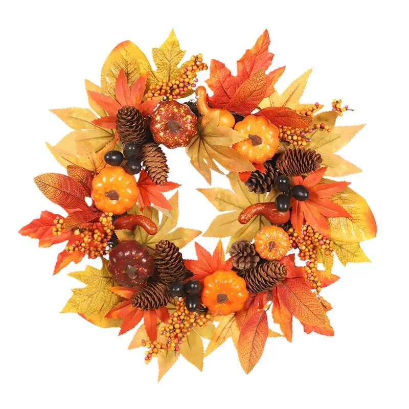 Осенний венок, искусственные осенние тыквы, дверной венок, деревенские сосновые конусы, гофры, листья, фермерские сезонные вешалки, декор для передней части
