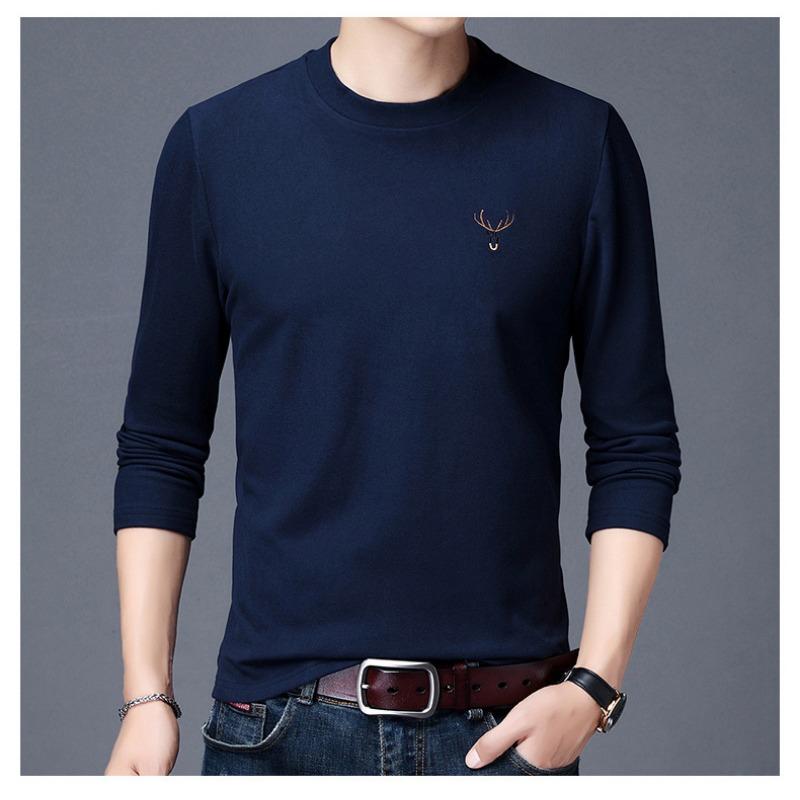 Осенний двусторонний бархатный пуловер с верхом из полувысокой талии, мужская однотонная теплая футболка с длинным рукавом M темно-синий