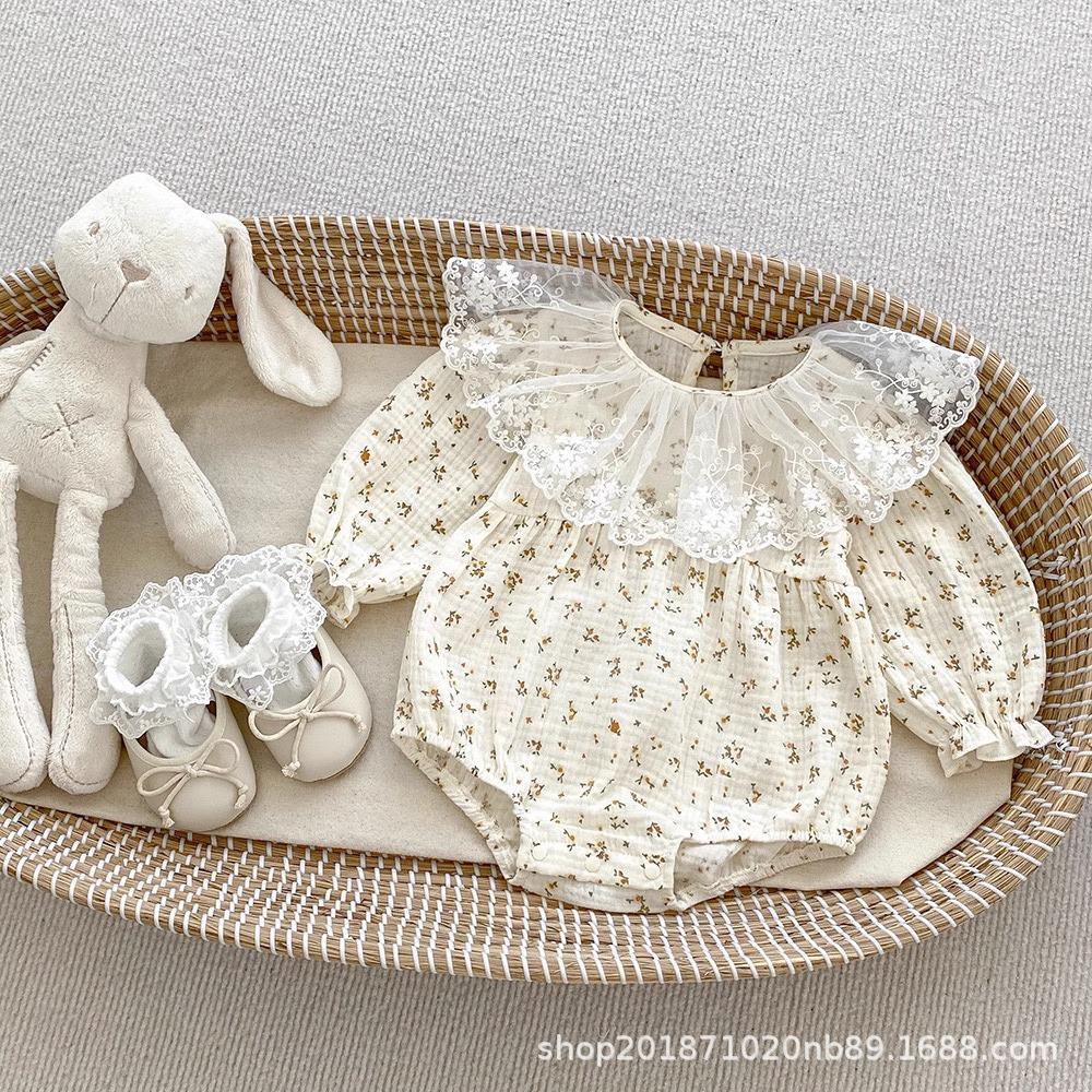 2024 Осень Милый цветочный кружевной детский комбинезон с длинными рукавами 80 cm