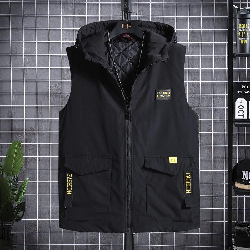 Осенний мужской повседневный жилет больших размеров, свободный однотонный рабочий жилет с капюшоном 4XL-11XL 4XL чёрный