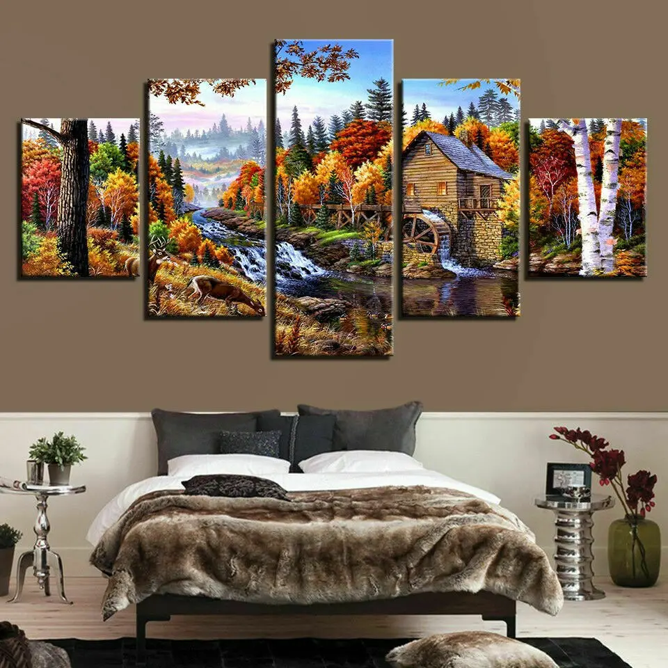 Осенний семейный пейзаж, Картина на холсте, настенное искусство, Декор, картины, домашний декор, без рамки, декор комнаты, 5 панелей