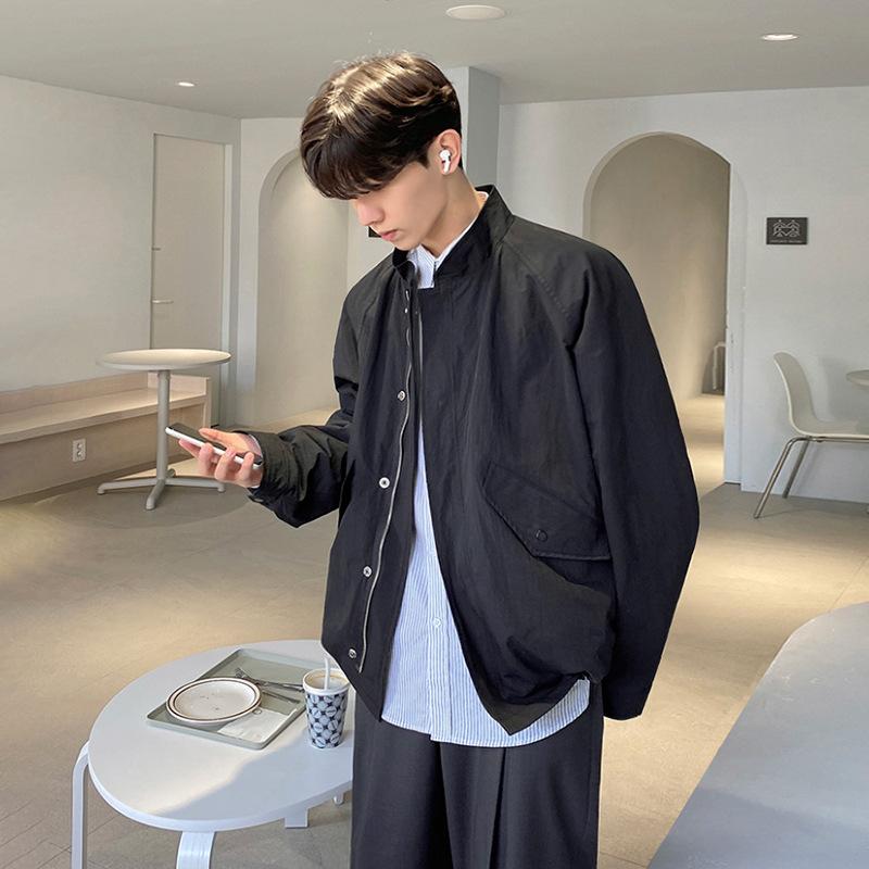 Осенняя мужская куртка с воротником-стойкой, свободный повседневный топ в корейском стиле, модная рабочая куртка для мужчин, мужская одежда на весну и осень 2XL чёрный