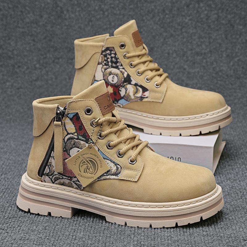 Осенняя мужская обувь, новые дышащие высокие ботинки Martin, мужская модная универсальная обувь с толстой подошвой, нескользящая, повседневная, короткие ботинки 44 песочный