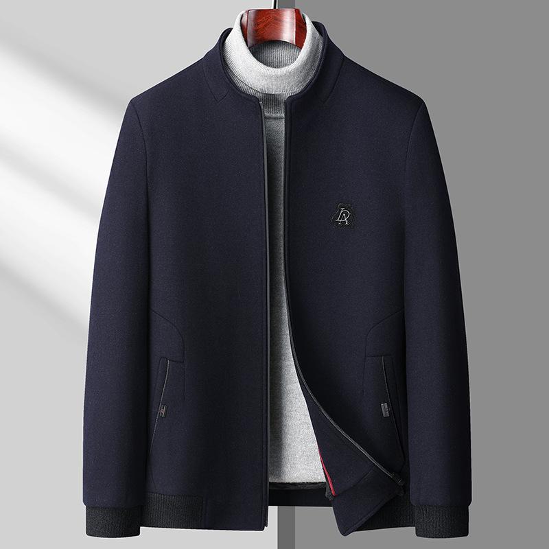 Осенняя мужская повседневная куртка из хлопка с воротником-стойкой Шерстяная куртка для людей среднего и пожилого возраста Куртка для папы Мужская куртка 3XL темно-синий