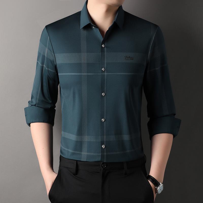 Осенняя мужская рубашка из шелка Mulberry с длинными рукавами, деловая, повседневная, не требующая глажки, для пап среднего возраста, универсальная мужская рубашка 4XL