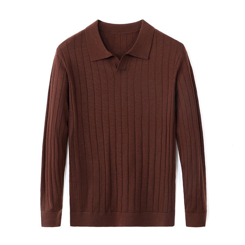 Осенняя мужская футболка с длинными рукавами из чистой шерсти с лацканами, высококачественная рубашка поло с воротником-ласточкой из камвольной пряжи 48-го калибра XXL