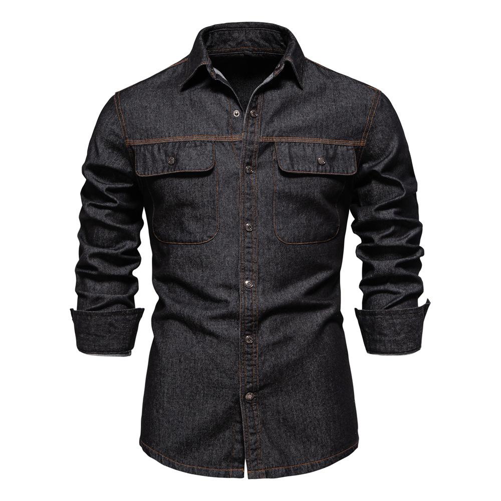 Осенняя новая высококачественная мужская рубашка из стираного денима, мужская повседневная рубашка из хлопка с длинными рукавами 2XL