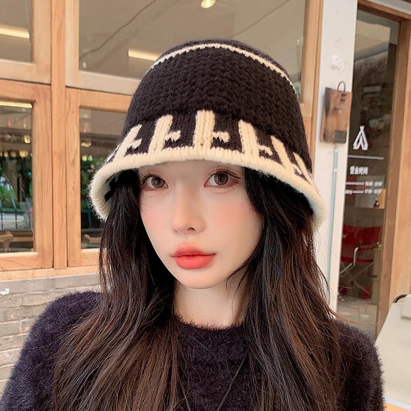 Осенняя новая модель вязаной вручную шапки для женщин без макияжа, чтобы прикрыть лицо и подчеркнуть маленький размер, шерстяная шапка для защиты от холода и тепла, шапка-рыбачка M(56-58cm)
