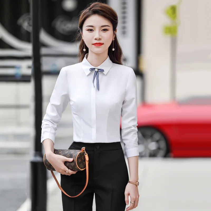 Осенняя новая стильная белая рубашка с длинными рукавами, Женская приталенная рубашка с невидимыми пуговицами, профессиональный темпераме...