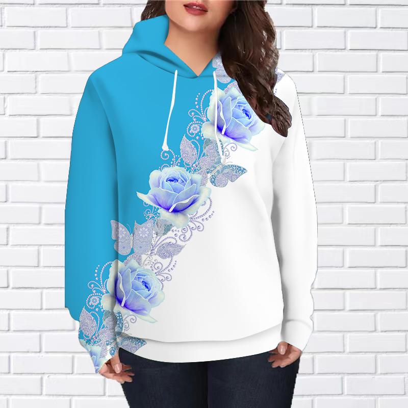 Осенняя новинка 3D-печатная цифровая наклонная толстовка с принтом персикового цветка женская бейсбольная форма 4XL синий