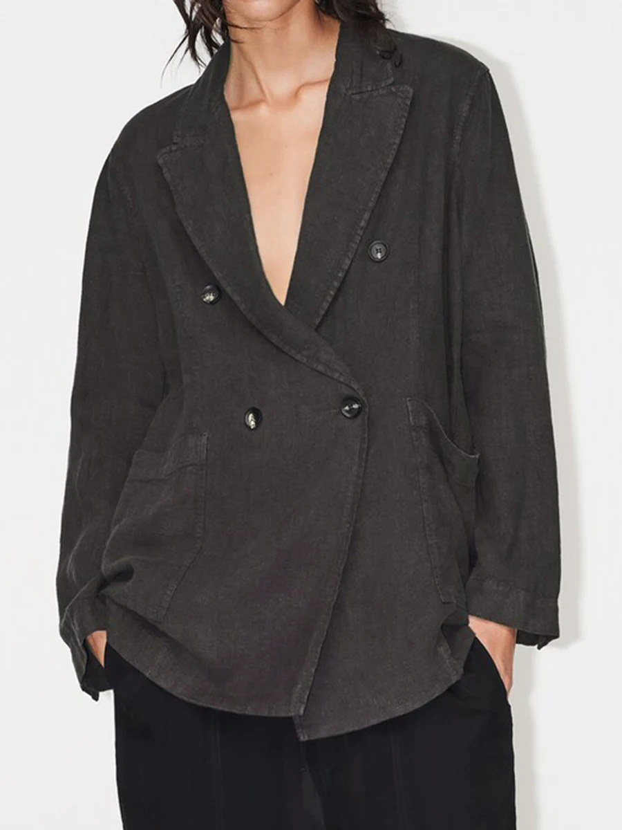 Осенняя однотонная женская куртка с карманами 2023, винтажное пальто с отложным воротником, тонкими пуговицами и длинным рукавом, куртка, женская уличная мода, модная верхняя одежда