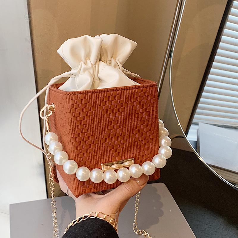 Осенняя соломенная цепочка с бусинами, маленькая квадратная сумка, модная универсальная новая плетеная сумка-ведро, персонализированная сумка через плечо, сумка-мессенджер коричневый