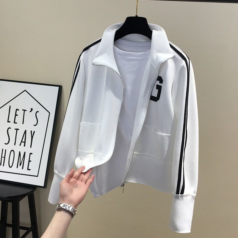 Осенняя тонкая короткая куртка с буквенными полосками, женская верхняя часть, дизайн Sense Niche, милая шикарная бейсбольная форма 3XL белый