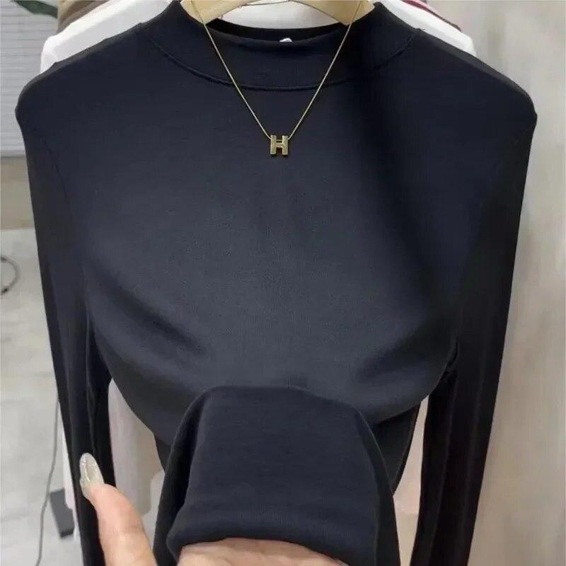 Осенняя футболка Y2K, модная зимняя футболка с длинным рукавом, теплый топ, повседневная уличная рубашка, рубашка с однотонным низом, тонкая одежда Blusas 29770 XL морская черепаха