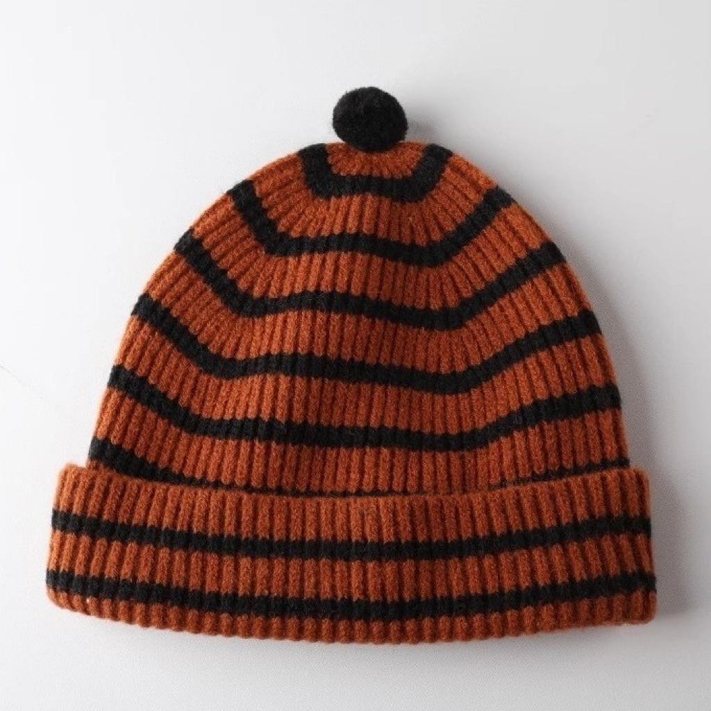 Осенью и зимой новая уличная мода носить дыню меховая шапка модная полосатая вязаная холодная шапка женская короткая шерстяная шапка мужская M(56-58cm)