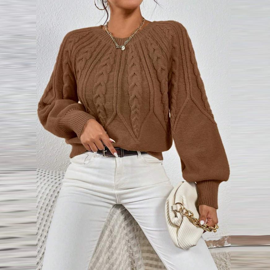 Осень Зима Женские Вязаные Пуловеры Однотонные Круглый Вырез Длинный Рукав В рубчик Однотонные Повседневные Свитера Топы S кофейный
