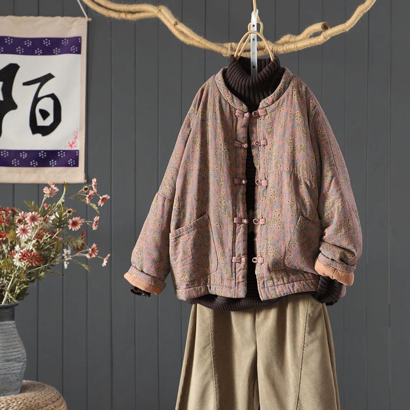 Осень Зима Женские Хлопковые Стеганые Пальто Женские Винтажный Стиль Цветочный Принт Женские Толстые Утепленные Куртки One Size розовый