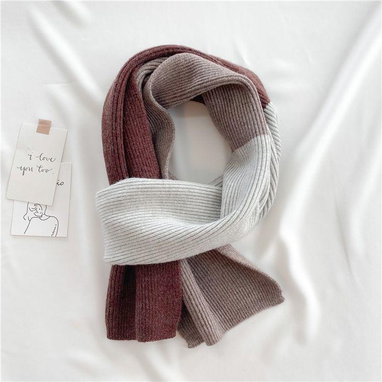 Осень Зима Женский Защищающий Шею Корейский Стиль Милый Девичий Теплый Вязаный Универсальный Студенческий Шарф Колорблок