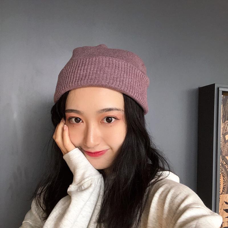 Осень и Зима Корейский Стиль Модная Универсальная Толстая Шерстяная Шапка Инс Защищающая Лицо Маленькая Теплая Защищающая Уши Вязаная Шапка Adjustable (56-58cm)