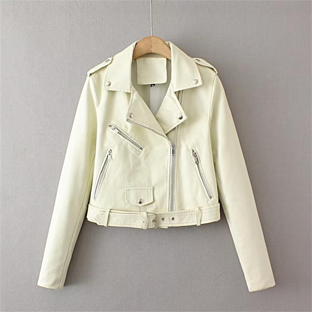 Осень/Зима Новый продукт Женская новая мода и повседневная универсальная кожаная куртка-поло с отделкой на молнии XL белый
