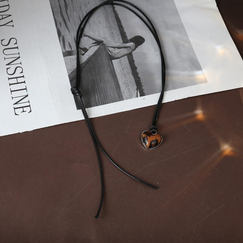 Осень и Зима Ретро Ожерелье с Подвеской в Форме Сердца, Квадратное, с Леопардовым Принтом, Длинная Цепочка-Шнурок Черного Цвета Love