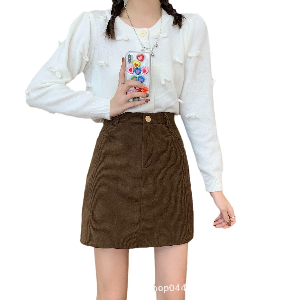 Осень/Зима 2024 Большой Размер Черная Вельветовая А-силуэта Миди Юбка - Завышенная Талия, Приталенный, Непрозрачный Облегающий Дизайн S кофейный
