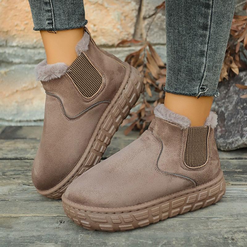 Осень/Зима 2025 Новые Женские Зимние Ботинки Большого Размера на Толстой Подошве, Персонализированная Шина, Круглый Носок, Эластичная Резинка 39 хаки