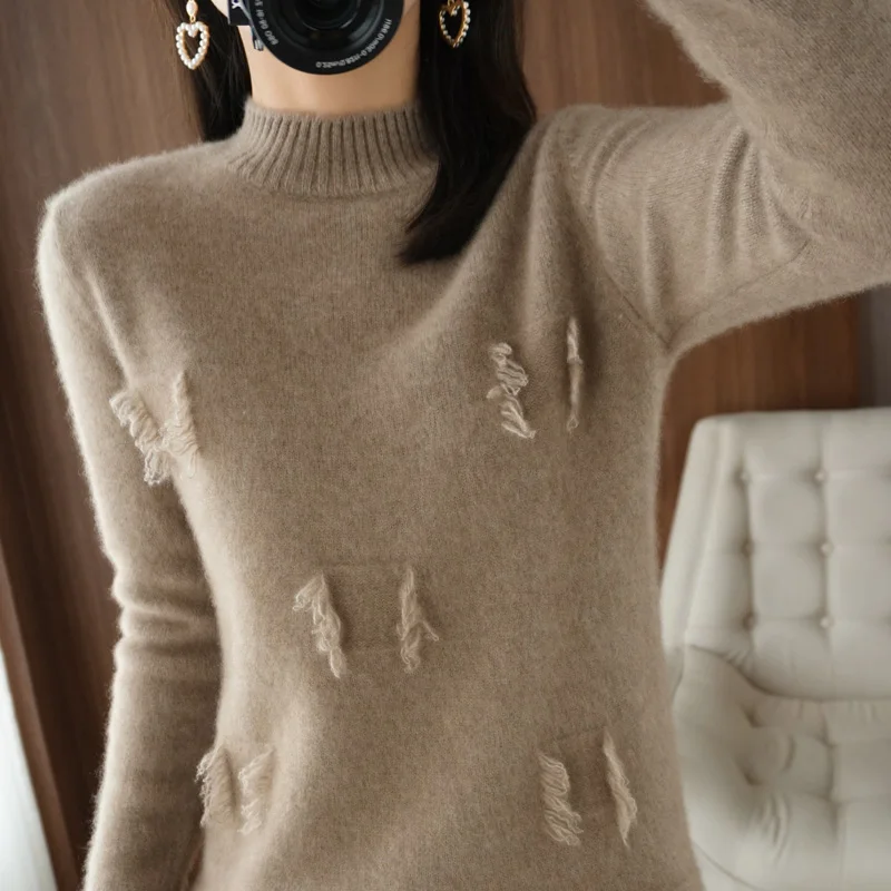 Осень/Зима 2121, кашемировый свитер, Женский пуловер с полувысоким воротом, Повседневные вязаные топы из 100% чистой шерсти, женские куртки