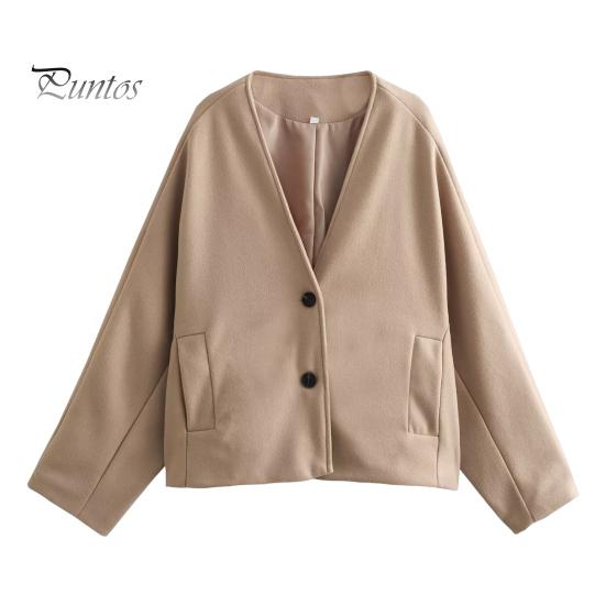 Осень-весна Женская куртка Свободный V-образный вырез Карманы Двойная застежка на пуговицы Теплое свободное шерстяное пальто средней длины Походная верхняя одежда L хаки