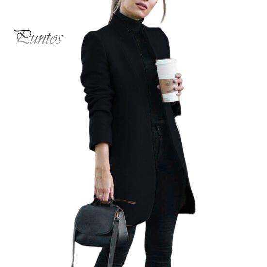 Осень-весна женское шерстяное пальто с воротником-стойкой, открытой строчкой, приталенное пальто с длинными рукавами, средней длины, однотонное, OL, официальное пальто для поездок на работу M