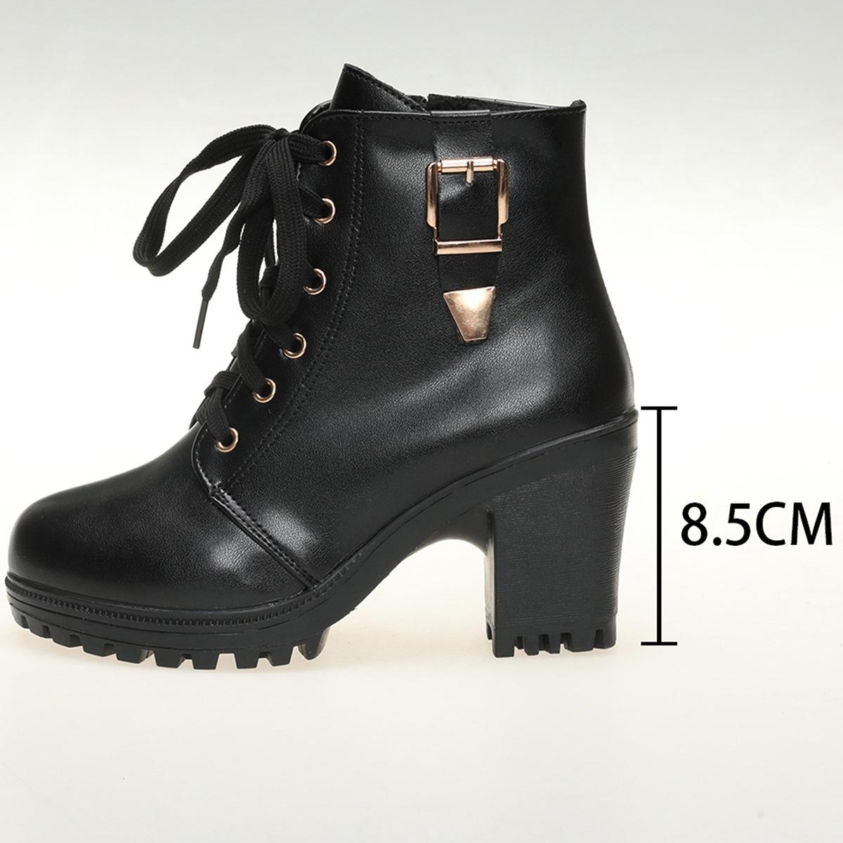 Осень-зима Большие размеры женские ПУ короткие сапоги удобные теплые круглые с пряжкой на ремне толстые высокие подошвы ботинки Martin обувь 36-42 42 чёрный