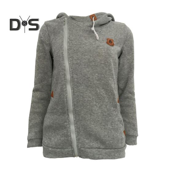 Осень-зима Женская толстовка с капюшоном, диагональная молния, толстые длинные рукава, большие размеры, однотонная, с завязками на шнурке, с капюшоном, эластичные манжеты, спортивная повседневная одежда, домашнее офисное пальто 4XL светло-серый