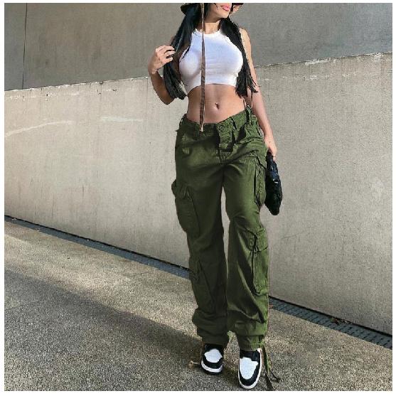 Осень и зима Новая европейская и американская женская одежда рабочая одежда прямые брюки с высокой талией свободные широкие джинсы в стиле ретро для папы женские M зелёный