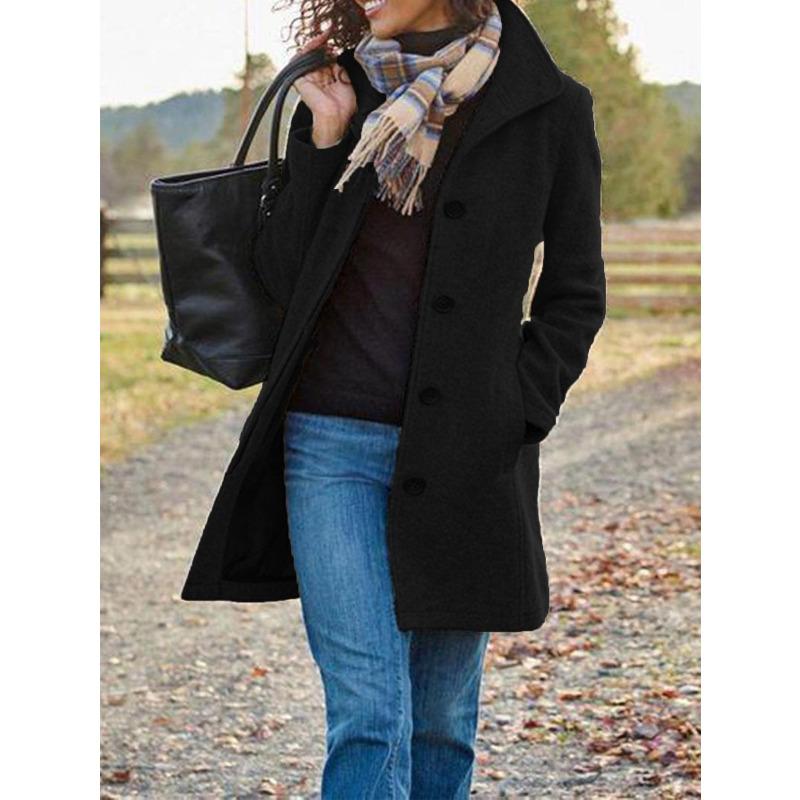 Осень и зима Новая женская одежда Ретро Среднего и длинного сплошного цвета женское шерстяное пальто Пальто женское XXXL