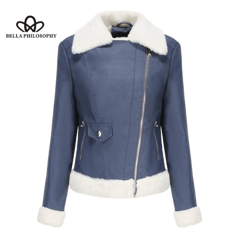 Осень-зима Новая стеганая кожаная куртка женская теплая куртка с длинными рукавами и лацканами повседневная куртка женская куртка XL синий