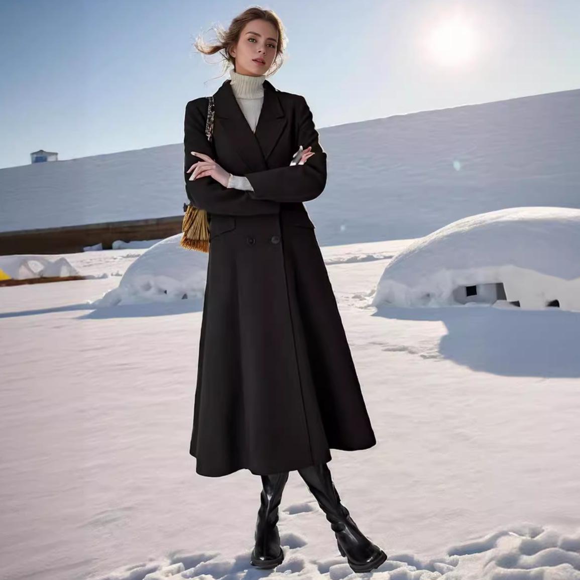 Осень и зима Новое шерстяное пальто женское до колена утолщенное большого размера с лацканами супер длинная тонкая куртка M