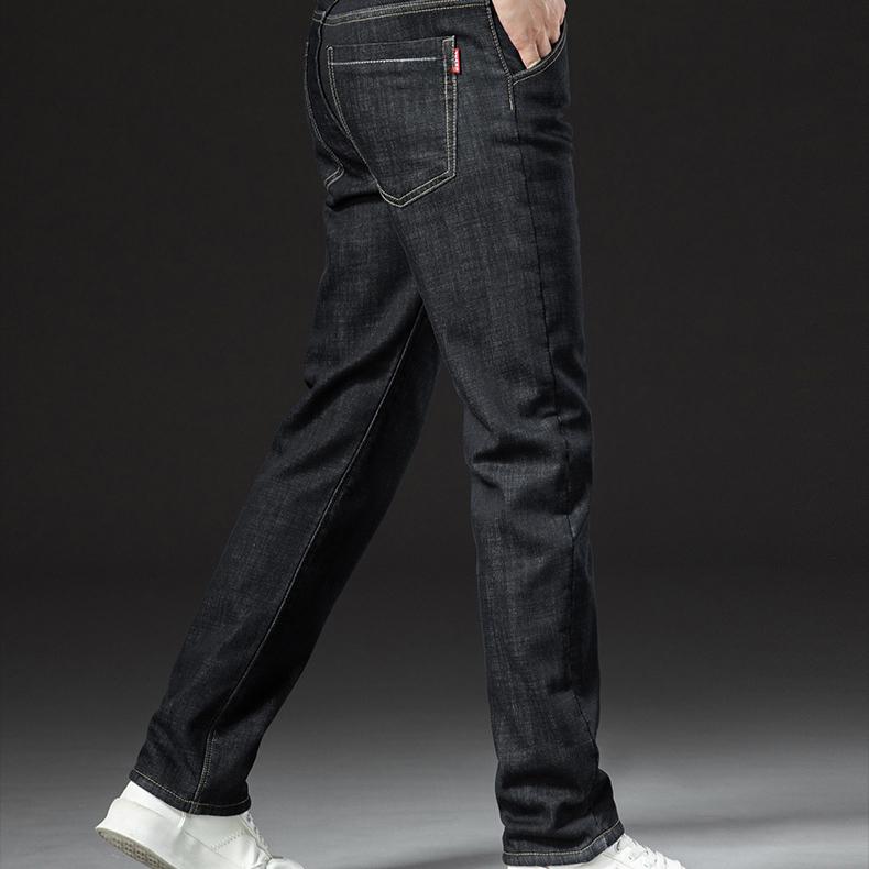 Осень и зима Плюс Бархатные толстые джинсы Мужские свободные прямые брюки Среднего возраста Хлопок Эластичный для сохранения тепла 28 темно-синий