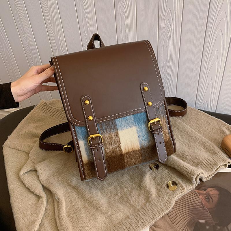 Осень-зима винтажный женский твидовый клетчатый рюкзак модный универсальный большой емкости школьная сумка модный женский квадратный рюкзак