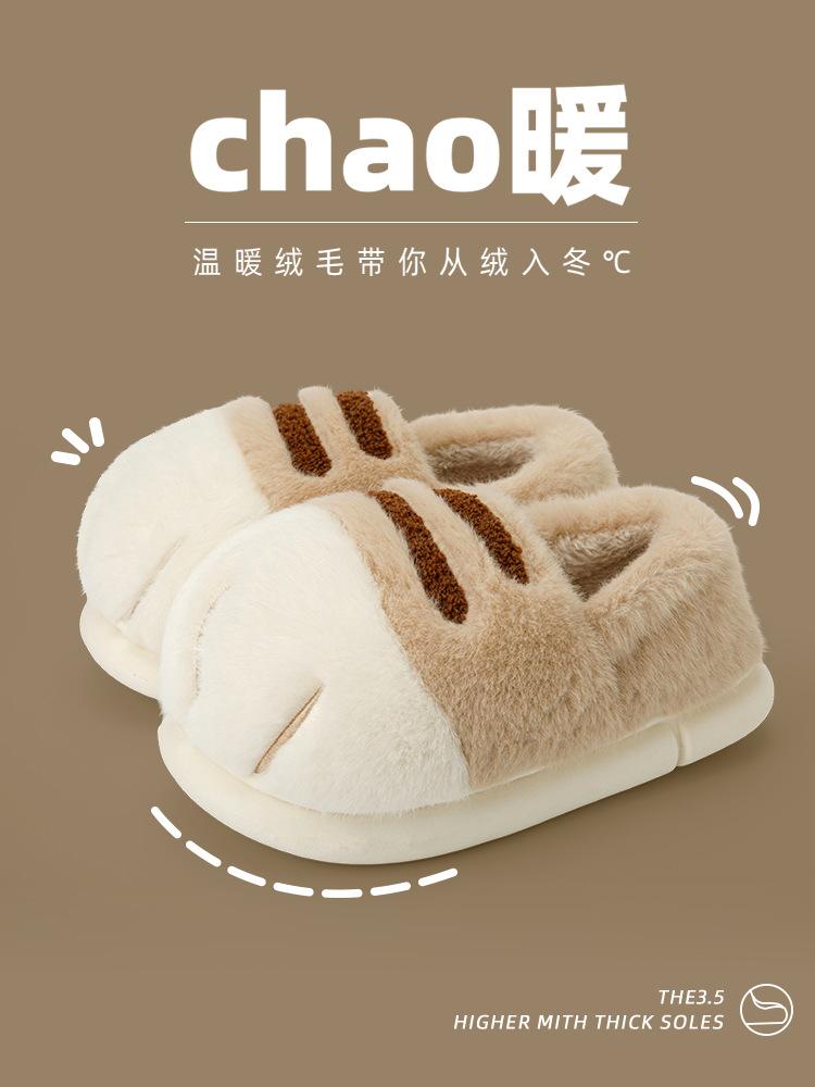 Осень и зима должны войти в милые хлопковые туфли с кошачьими лапками, утолщенные и теплые, для пар, для дома, комнатные хлопковые туфли 44-45 (suitable for 43-44 feet)
