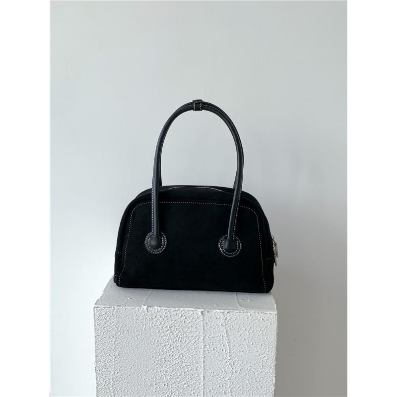 Осень и зима замшевая вместительная сумка-тоут женская высококлассная нишевая модная комбинированная плюшевая сумка чёрный