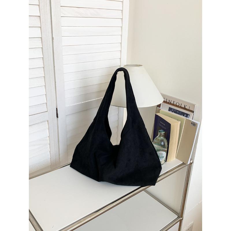 Осень и зима новая замшевая сумка повседневная ретро сумка через плечо женская большая вместительная сумка-тоут для работы женщины чёрный
