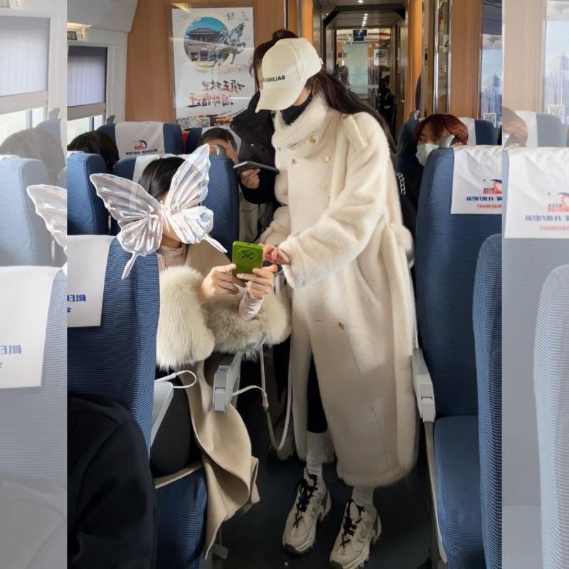 Осень и зима новая искусственная шуба женская искусственная норка плюшевая утолщенная и длинная локомотивная шуба двубортная S слоновая кость