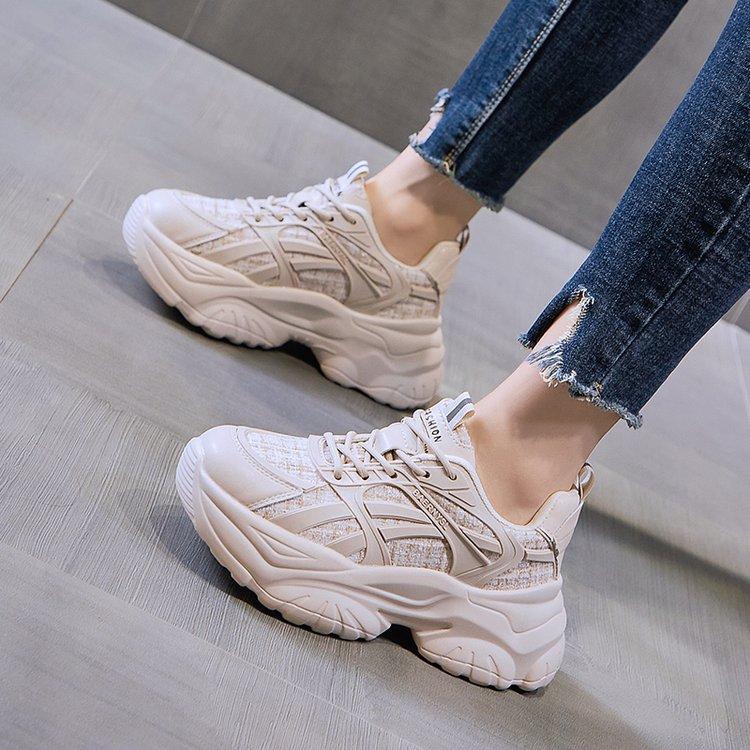 Осень и зима новая обувь на платформе с перекрестными ремешками спортивная повседневная обувь толстая подошва увеличивающая рост ретро универсальные кроссовки для папы женские 40 бежевый