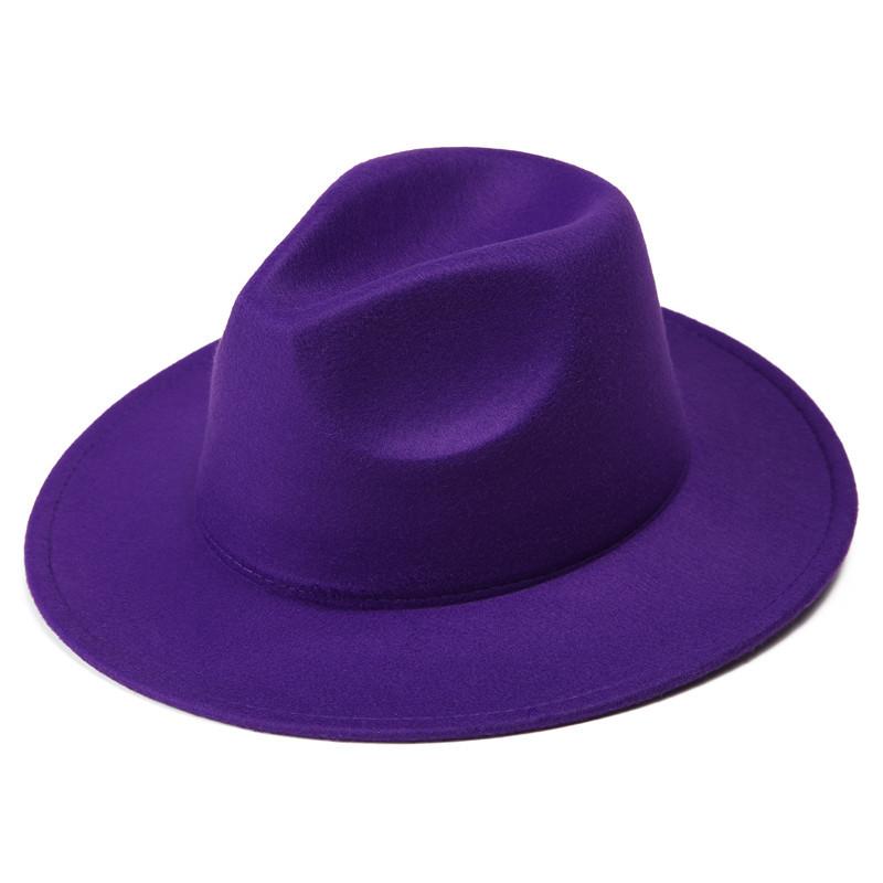 Осень и зима новая шерстяная шляпа-цилиндр мужская и женская парная шляпа большие поля прямые поля шляпа модная универсальная джазовая шляпа M(56-58cm) фиолетовый