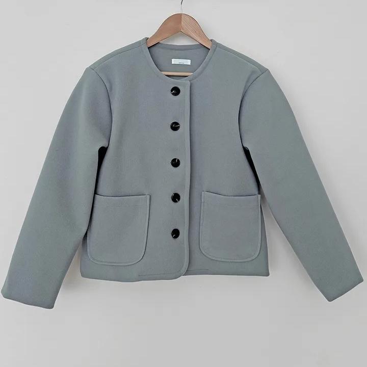 Осень-зима, новое французское модное шерстяное пальто с круглым вырезом, повседневное свободное однобортное шерстяное короткое пальто onesize синий