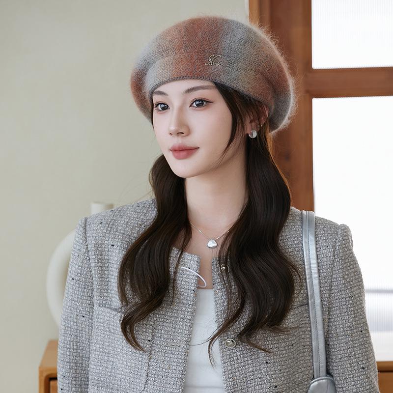 Осень и зима новый берет из кроличьей шерсти темперамент универсальная вязаная шерстяная шапка теплая модная шапка художника женская шапка one size чёрный