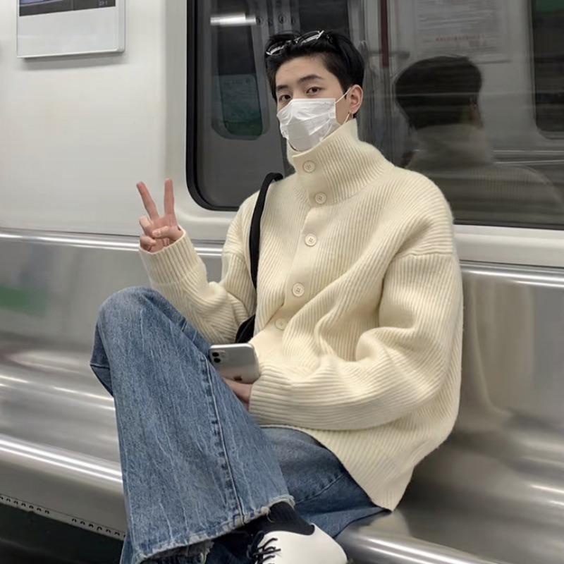 Осень и зима новый мужской свободный повседневный свитер с высоким воротником куртка 2XL абрикосовый