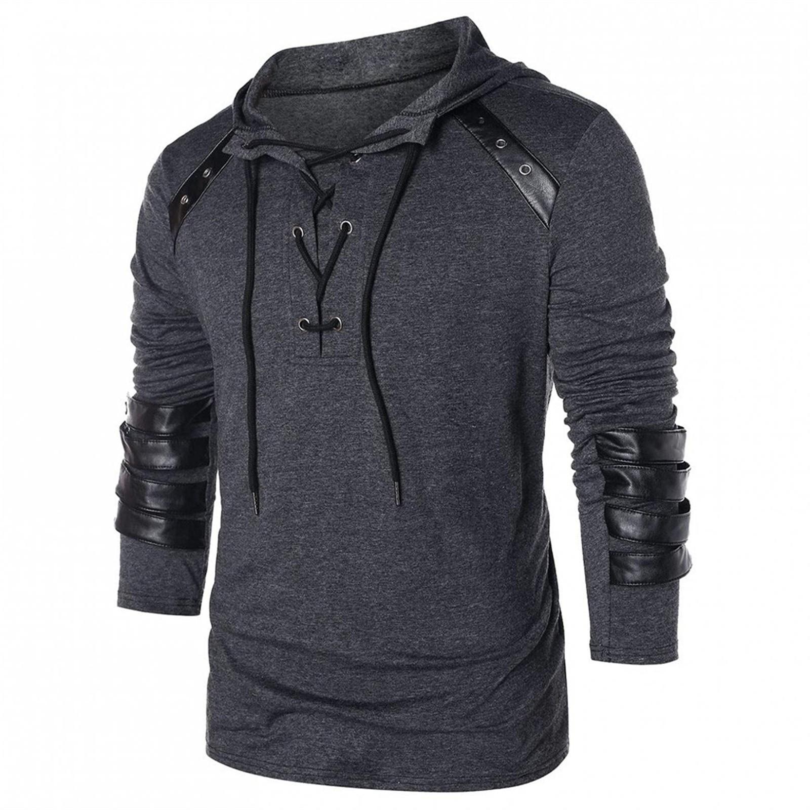 Осень и зима с капюшоном мужская кожаная повседневная индивидуальная модная толстовка с капюшоном в стиле пэчворк для мужчин с капюшоном на ремне XXL