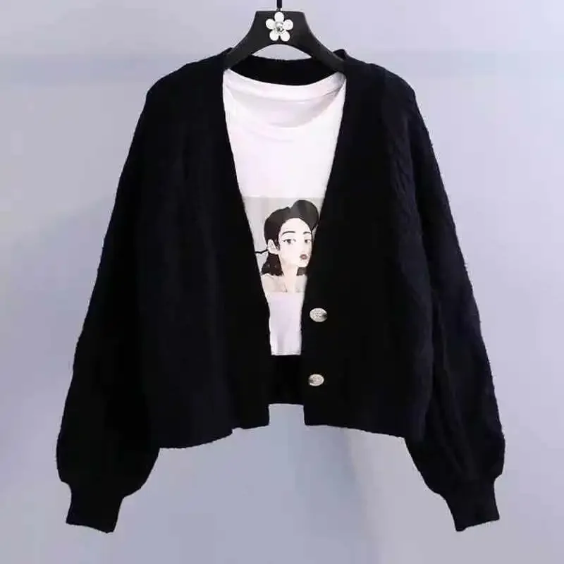 Осень-зима 2024, новая одежда в ленивом стиле, вязаный кардиган, свитер, женский короткий свитер, пальто